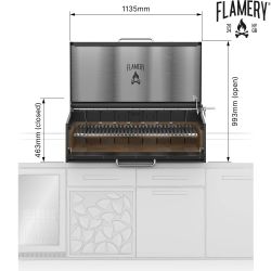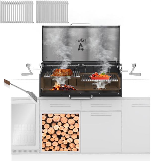 The ASADO PRO.3.2 from Flamery is our large, built-in Asado BBQ Grill - designed to integrate into your outdoor kitchen for a sophisticated and permanent setup.