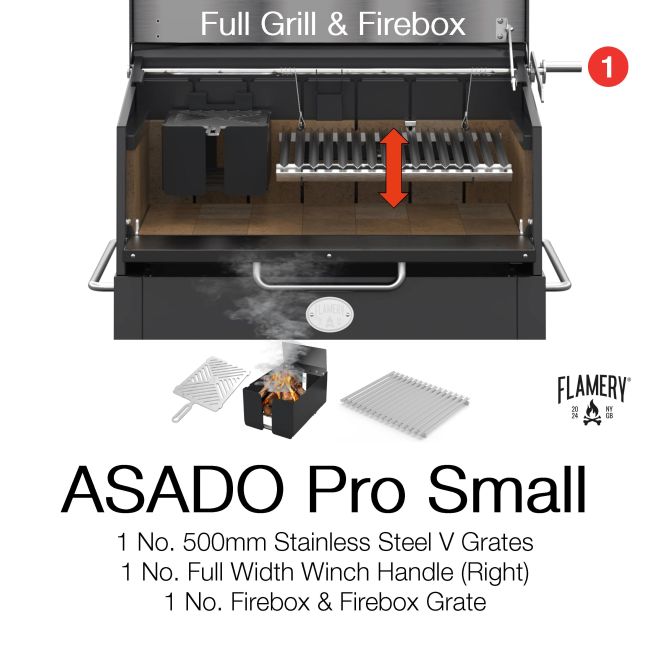 The ASADO PRO.1.1 from Flamery is our Small Asado BBQ Grill on Stand and offers a compact and efficient solution for those with limited space but a passion for wood-fired grilling. With a cooking area of 80cm x 41cm, this grill is perfect for smaller gatherings or intimate meals.