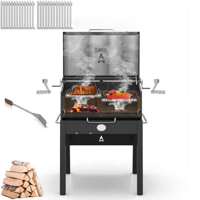 The ASADO PRO.1.1 from Flamery is our Small Asado BBQ Grill on Stand and offers a compact and efficient solution for those with limited space but a passion for wood-fired grilling. With a cooking area of 80cm x 41cm, this grill is perfect for smaller gatherings or intimate meals.