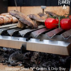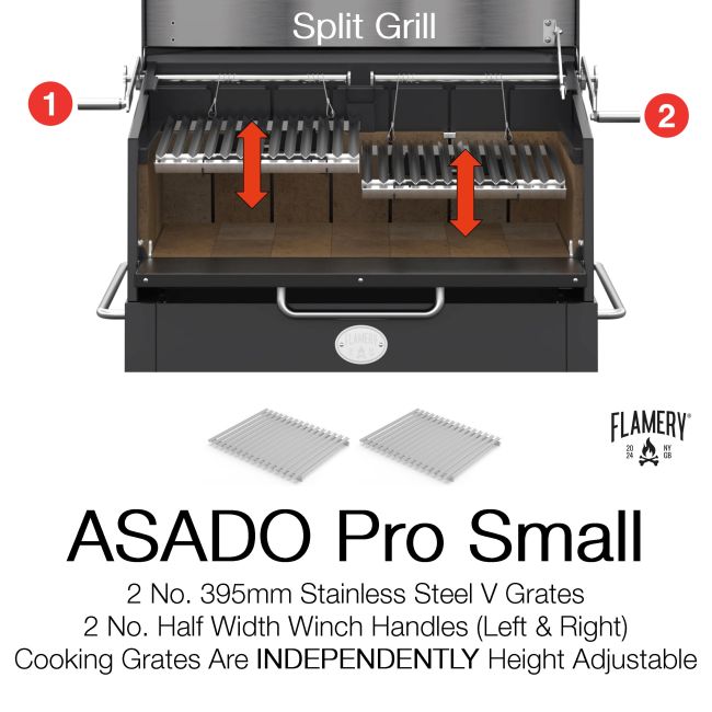 The ASADO PRO.2.1 is our Small Asado BBQ Grill on Trolley, designed for those who love wood-fired grilling but need a smaller, more confined option. Our Small Grill has a cooking area of 80cm x 41cm, still providing sufficient space to create precise cooking zones.