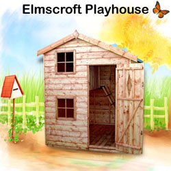 The Elmcroft compact two-story playhouse has an upstairs platform complete with ladder and safety rail, two Perspex glazed windows and Perspex glazed diamond in 565 x 1525mm door with decorative handle, piano style continuous hinge and magnetic catch.
