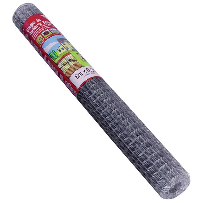 Cage and Aviary galvanised mesh. Tough electro-welded mesh, 'hot-dip' galvanised. In rolls of 6m long x 0.9m wide