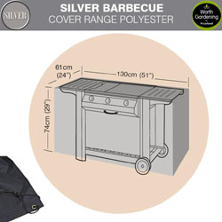 Keeps your barbecue clean and dry. The cover is made from high quality PVC backed polyester which gives full UV protection against the sun for longer life. It gives full weather protection with waterproof taped seams and an all round draw string bottom with cord locks for added security. It protects from sudden summer showers, winter weather and is secure in windy conditions. Has a wipe clean surface.