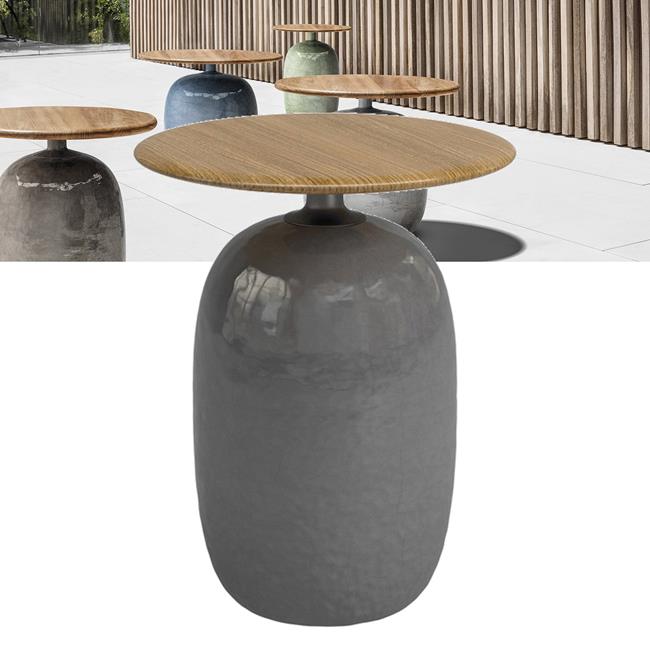 Gloster Blow - 42cm Round Table Buffed Teak Top Smoke