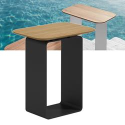 These contemporary styled side tables are simple in design with a touch of industrial practicality. Made from powder-coated aluminium with a buffed teak surface, the side table is practical as well as easy on the eye. Use the side table with outdoor lounge and deep seating collections such as Vista or Bay, or simply around the pool with a sun lounger.