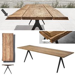 The legs of the Split table have a very characteristic look with an inverted ‘Y’ construction and tapering form, which emphasises a light and subtle connection to the ground. The uneven cutting of the table top slats adds an organic look, whilst tricking the eye with a visual surprise.