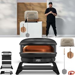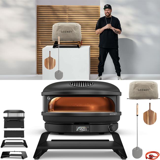This package includes Gozney Arc XL pizza oven, booster, cover, 14" wood placement peel & utility turning peel
