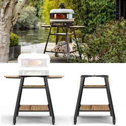 Designed with cooking on the Dome in mind, your oven securely connects to the stand with an easy turn fastener and sits at the perfect height for cooking. The bamboo shelves, hanging hooks and adjustable wings are built in for convenience while the four large wheels make it easy to move your oven around your backyard.