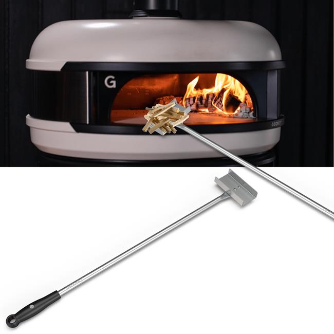 The stainless steel cup is the perfect size for Gozney Wood, allowing you to easily load wood anywhere in the oven. Rotate the plastic handle to break up wood with extra accuracy while cooking, and avoid getting ash on your food.