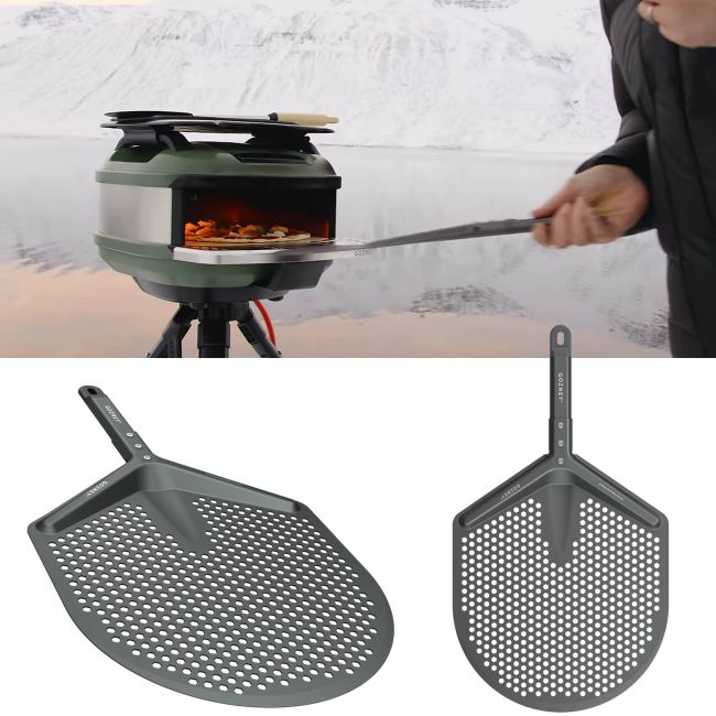 The Venture Placement Peel is designed to offer chefs a superior lightweight and optimized pizza experience wherever the adventure takes you. Built with a short handle to be easy to use with the Tread oven and tuned specifically to the needs of pizza-makers who want to create their best pizza even in remote locations. A fully perforated blade allows maximum flour dispersion. The blade’s rounded shape helps you shape a perfect circle every time. The fully aluminum construction provides lightweight comfort and overall responsiveness, creating a seamless extension of the chef’s arm for pizza in places you never thought possible.