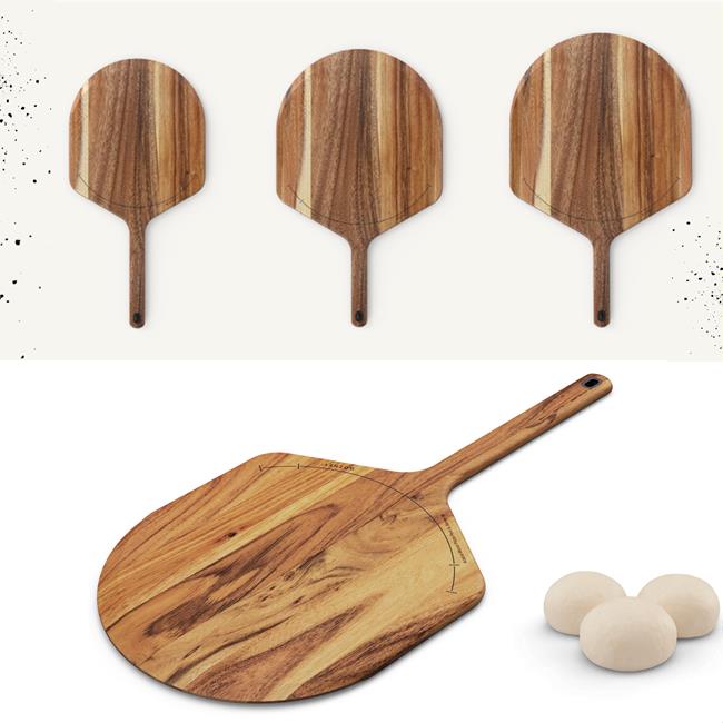Building, launching and serving pizza is easy with the pizza-maker's best friend, Acacia Wood Pizza Peel & Server.