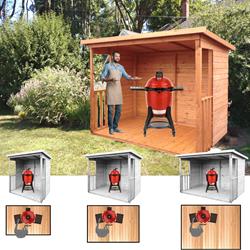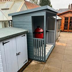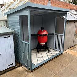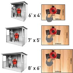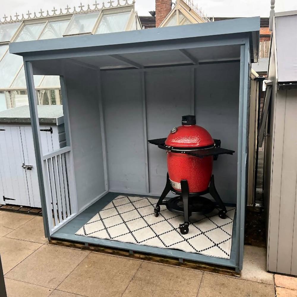 An open fronted wooden garden shelter, available in 3 sizes. Ideal for BBQ & Pizza oven shelter, log store, smoking shelter or just a quiet place to sit in your favourite chair or bench. Paint it any colour you wish, or create a garden bar.