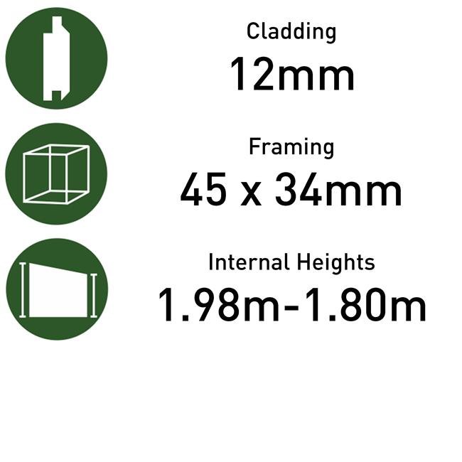 ![]() 8' x 6' (2.4m x 1.8m x 2.0m high) 12mm T&G Cladding Availability: usually delivered within 8 - 10 weeks Pls add extra 2 - 3 weeks if selecting Treatment & Assembly services Product Code: GRET0806 |