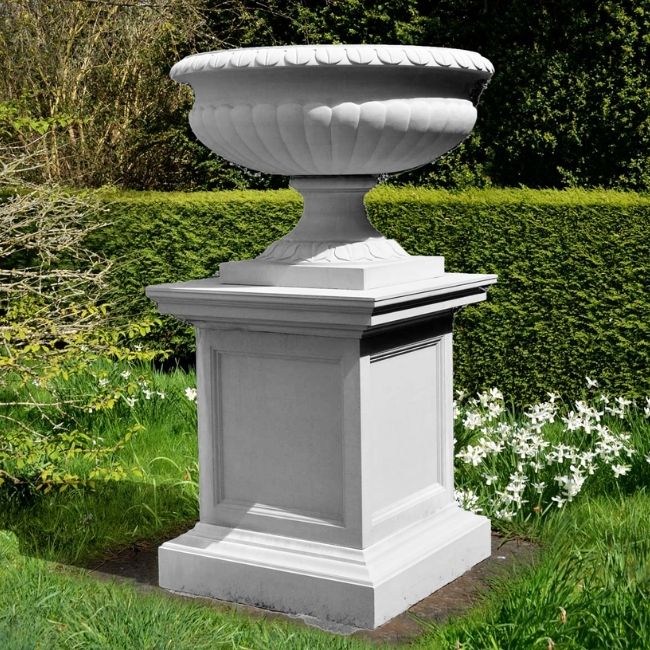 This item features deeply recessed mouldings based on the existing Georgian Pedestal. Illustrated here with optional Large Fontainbleau Urn.
