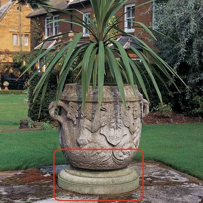 Use this simple, circular plinth to elvate the Corredo Jardiniere as shown.