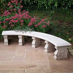 This sizeable double curved stone garden bench seat makes a beautiful addition to an elegant outisde space. It offers ample seating space for guests, as well as making a stunning display in your garden, courtyard or terrace.