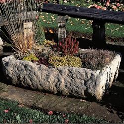 The cast stone Large Alpine Trough from Haddonstone is a popular garden container. This rustic planter is ideal for a miniture apline garden.