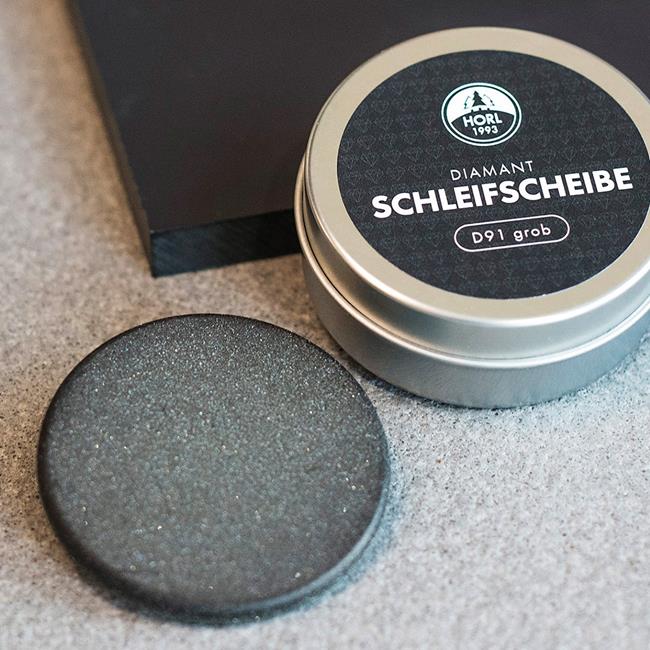 The coarse diamond grinding disc is three times rougher than the standard diamond and therefore more abrasive. It is suitable for quickly grinding especially dull knives or for correcting slightly chipped blades. When used for the first time, some excess diamond particles may flake off, but the coarse diamond grinding disc will then achieve the surface it will retain in subsequent use. Used correctly, it should not need replacing.