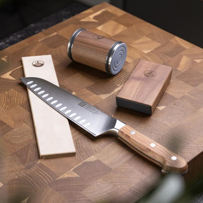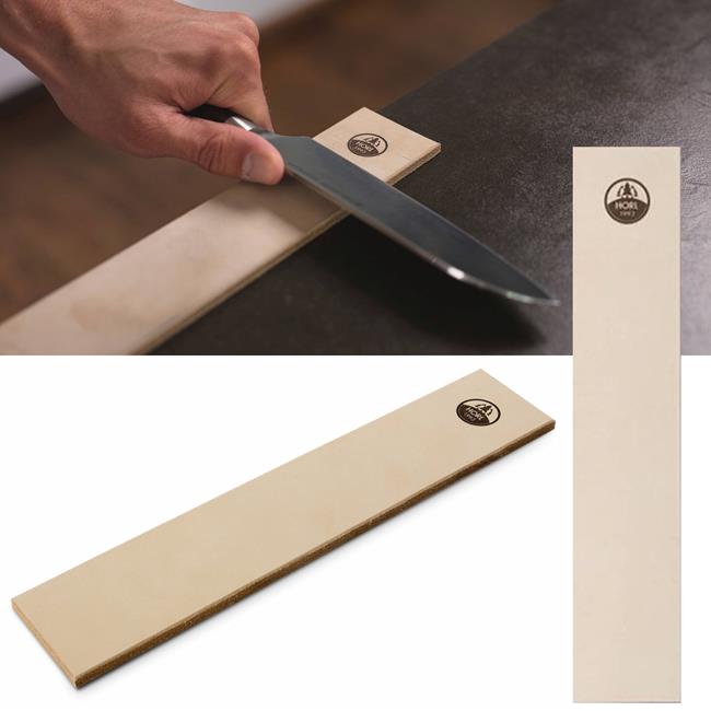 The HORL leather is made from vegetable-tanned cowhide. Stropping the blade with the leather gives it a professional finish after each sharpening. The finely pored surface of the leather removes even the tiniest particles of grinding residue to ensure a smooth, clean blade.