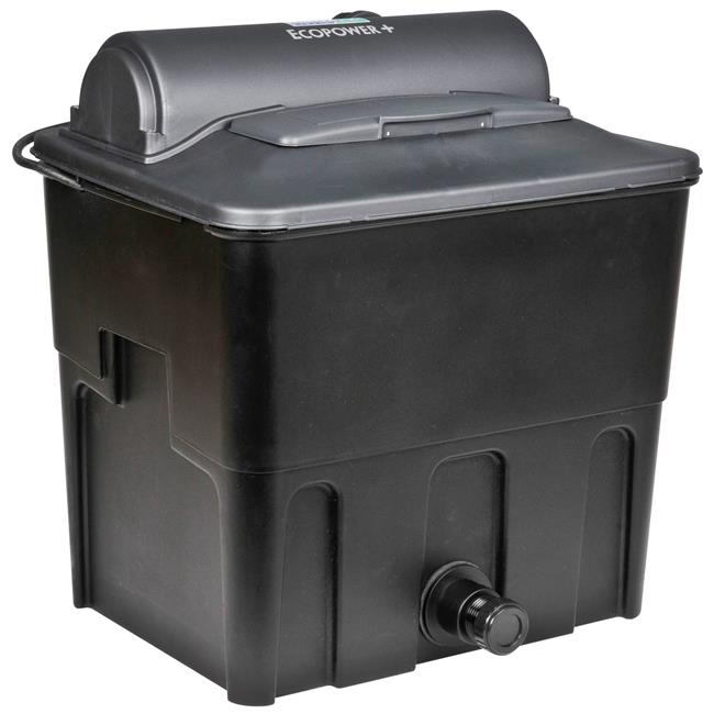 Hozelock Cyprio Ecopower+ garden pond filters can be sited almost anywhere. Used with the appropriate pond pump, it will improve water clarity, remove unwanted solid matter from the pond and convert dissolved organic and chemical fish waste into harmless compounds. The Ecopower+ filter is an external filter suited to be either above ground, in-ground or concealed at the top of a waterfall.
