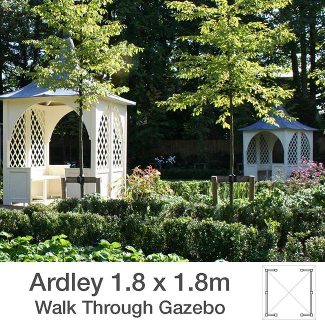 Main image shows 1800 x 1800mm Ardley Gazebo with trellis sides finished in 'Clotted Cream'
