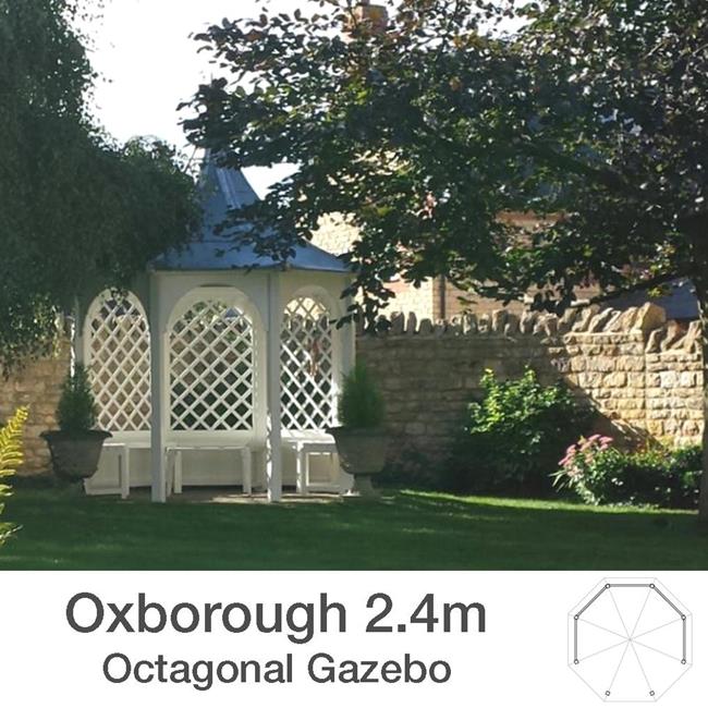 Octagonal in shape, the Oxborough gazebo represents an extension the Holkham range of Gazebos. With three open and five enclosed bays it enjoys the same flexibility as the Holkham, suiting both secluded areas of the garden and focal points.