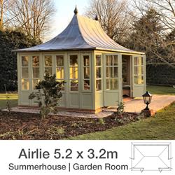 The Airlie Pavilion is designed to provide the separate functions of a Summerhouse when the weather allows and year round practicality when it does not. It is well suited as a home office, where finding the space within the house is not possible or indeed preferable, or a quiet place away from the house, whatever the weather.