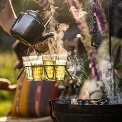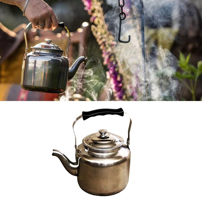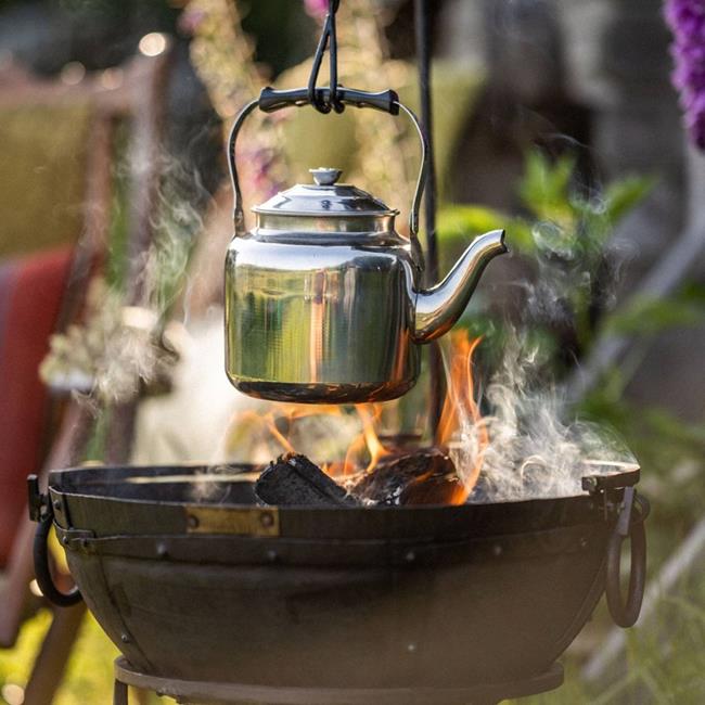 The Travel Kettle is designed to hang from the Travel Kadai Hook and comes with a heat resistant handle and detachable lid for easy filling. The traditional design is a great addition to the Travel Kadai and Hook.