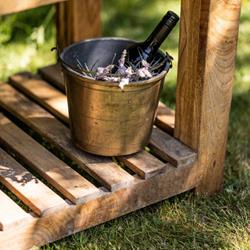 Handmade from sustainably sourced hardwood with a natural black limestone worktop the Garden Kitchen is both practical and aesthetic. The sturdy shelf is perfect to keep Kadai accessories and charcoal close to hand, with two drawers for utensils, knives and other essentials. Designed to be either placed against a wall or as an island counter the Garden Kitchen enhances any space, inside / outisde and next to your Kadai. Comes flat packed to reduce its carbon footprint and is easy to assemble.