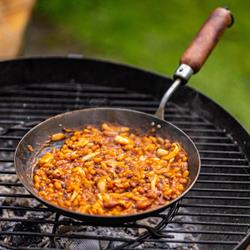 A perfectly weighted Frying Pan for use on the Holi Grill or in the Wood Fired Oven.