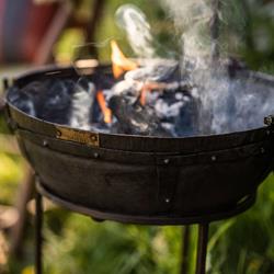 The Travel Kadai is easily portable and a perfect size for small terraces, camping, taking on holiday or to the beach. A convenient small barbecue or fire bowl that packs away neatly into its own cotton Duffle Bag for carrying.