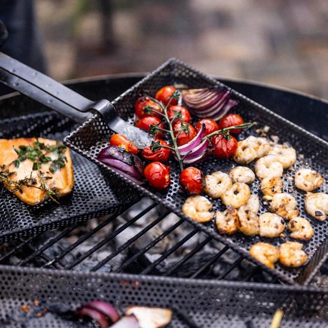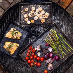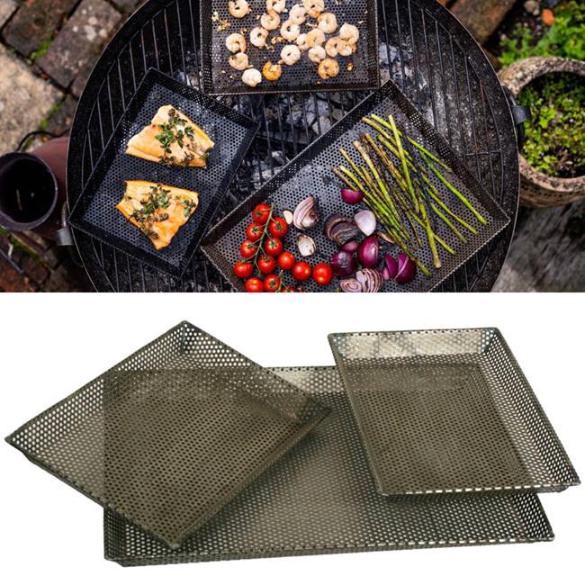 These Grill Trays are pure genius! The small holes allow the barbecue flavour through whilst stopping food falling between the grills. Easy to serve, easy to clean. Perfect for keeping food separate on the grill.