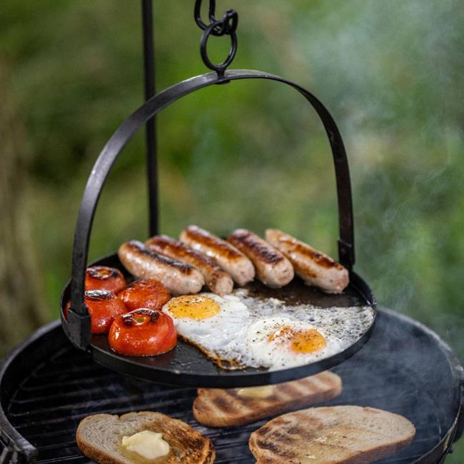 Suspend the folding Skillet using the Travel Hook or use directly on the grill.