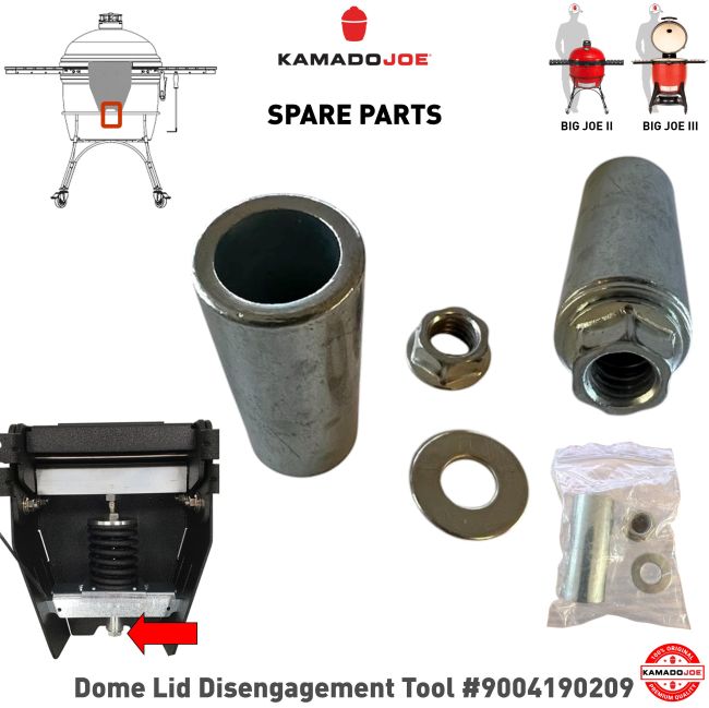 The Kamado Joe lid disengagement tool is designed to simplify the process of separating the dome and base of your Kamado Joe grill. It relieves the tension in the air lift hinge and makes removal of the metal bands & dome lid safe and easy