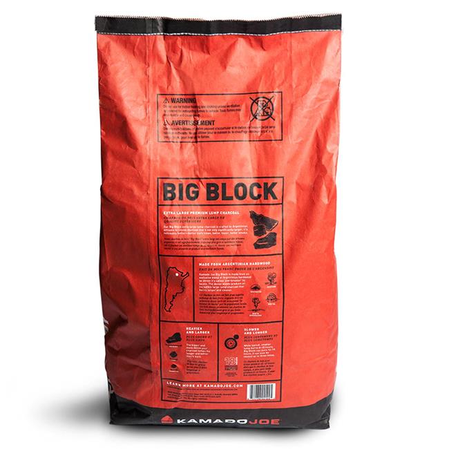 The Kamado Joe BIG BLOCK extra large lump charcoal is crafted by Argentinian artisans to create charcoal that is not only significantly larger, it is noticeably better - better burn times, better flavour, better smoke.