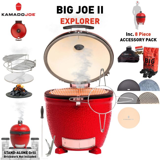 ![]() Big Joe II (2) Stand-Alone With 8pc Explorer Pack Inc. Cover & Charcoal + Firestarters + Cast Iron Griddle + Cast Iron Grate + Soapstone + Fish & Veg Grate + Pizza Stone Availability: IN STOCK Product Code: KJB2SOEXP |