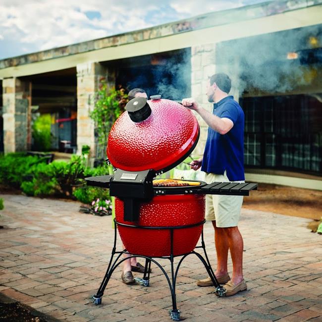 The Kamado Big Joe features a thick-walled, heat resistant shell that locks in smoke and moisture at any temperature. The easy-open dome includes the counterbalanced Air Lift Hinge and element-proof, ultra-precise Kontrol Tower top vent, while the extra large cooking surface underneath is crafted from commercial-grade 304 stainless steel.