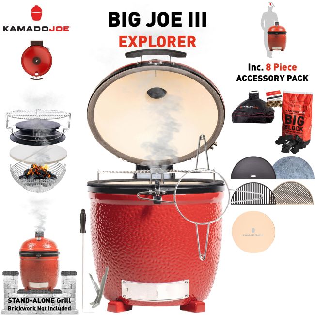 ![]() Big Joe III (3) Stand-Alone With 8pc Explorer Pack Inc. Cover & Charcoal + Firestarters + Cast Iron Griddle + Cast Iron Grate + Soapstone + Fish & Veg Grate + Pizza Stone Availability: IN STOCK Product Code: KJB3SOEXP |