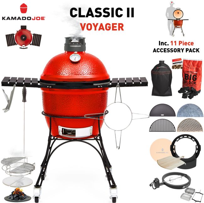 ![]() Classic Joe II (2) With 11pc Voyager Pack Inc. Cover & Charcoal + Firestarters + Cast Iron Griddle + Cast Iron Grate + Soapstone + Fish & Veg Grate + DoJoe Pizza Oven + Pizza Peel + JoeTisserie & Motor + JoeTisserie Basket Kit Availability: IN STOCK Product Code: KJC2VOY |