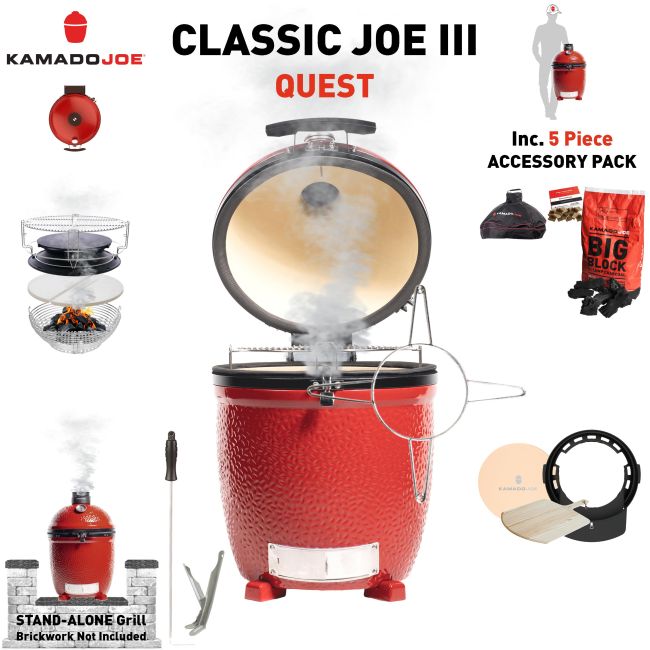 ![]() Classic Joe III (3) Stand-Alone With 5pc Quest Pack Inc. Cover & Charcoal + Firestarters + DoJoe Pizza Oven + Pizza Peel Availability: IN STOCK Product Code: KJC3SOQUE |