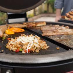 Create different heat zones in the Kamado with the half-moon heat deflector - an innovative design that partially blocks off heat to provide both indirect heat and open flame.