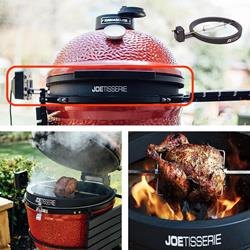 With a quiet-but-powerful motor that can spin up to 50 pounds of chicken, prime rib or Boston butt, the innovative JOEtisserie features a distinctive wedge shape so cooks can seal off the Kamado dome for optimal heat retention.