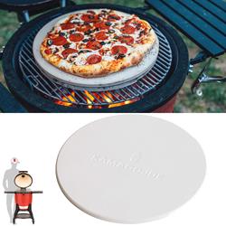 Best results are achieved by the pizza stone in conjunction with your existing half moon ceramic deflector plates, simply place both plates (or full plate with a Joe Junior) on either the top grill or the star shaped accessory rack, scrunch up 4 kitchen foil balls, about the size of a golf ball, and place your pizza stone on top, forming a 3-4cm air gap, this will prevent the bottom of your pizzas over cooking, before the top is baked - pre-heat your grill and stones before pizza cooking for gorgeous Kamado pizza every time