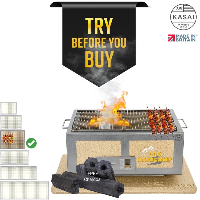 Here at Birstall we offer a unique service: TRY BEFORE YOU BUY Experience the simplicity of of a KASAI GRILL in your own garden, overnight. We'll giev you a FREE CHARCOAL Package of Sumi-Bincho and Lumpwood, tyr, enjoy & should you wish to purchase any size KASAI Grill, or package the rentail charge is 100% Refunded, call 0116 267 7091 for more details or call in to Birstall & see the range
