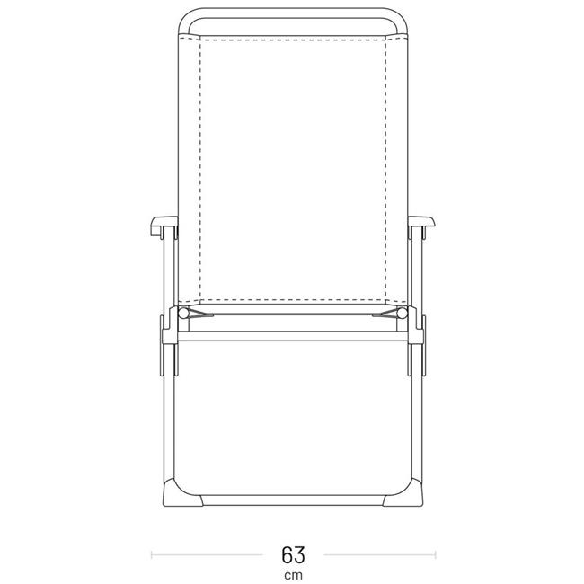 The Alu Cham is a unique high-back folding chair that reclines smoothly into five positions of relaxation. The rack-adjustment system is fitted into the smoothly moulded armrest to enhance the modern stylish appearance. Its lightweight frame is easy to handle and not susceptible to age or weather induced wear. The top of the back rest is angled in order that your head may rest against the taut fabric rather than the frame when fully reclined.