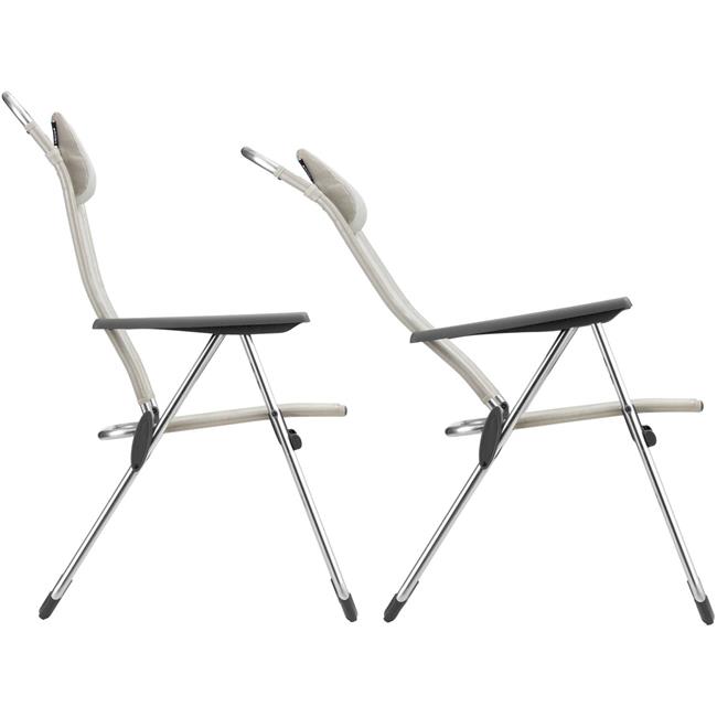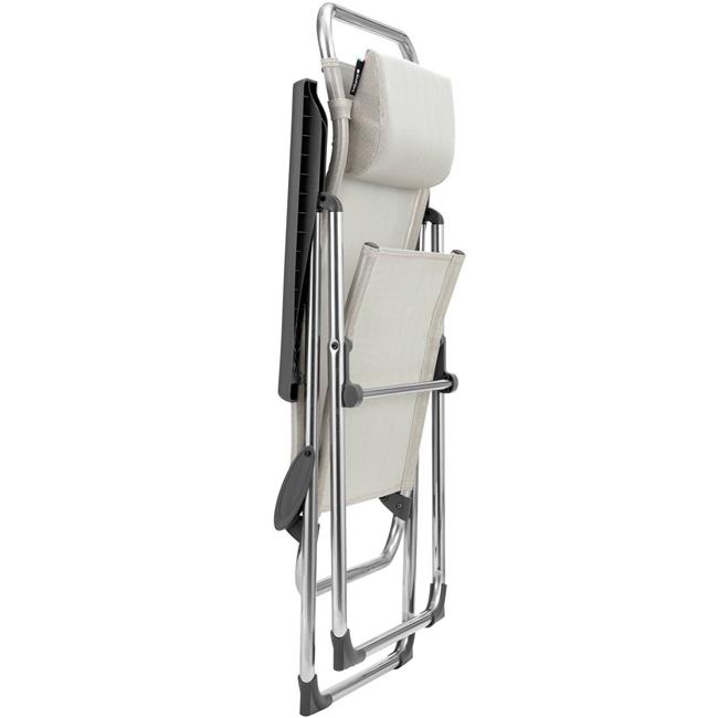 The Alu Cham XL is a unique high-back folding chair that reclines smoothly into five positions of relaxation. This model is an extra wide version of the popular Alu Cham / Cham Elips chair. The rack-adjustment system is fitted into the smoothly moulded armrest to enhance the modern stylish appearance. Its lightweight frame is easy to handle and not susceptible to age or weather induced wear. The top of the back rest is angled in order that your head may rest against the taut fabric rather than the frame when fully reclined.