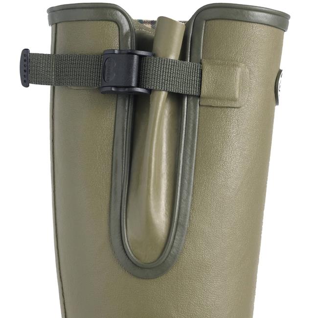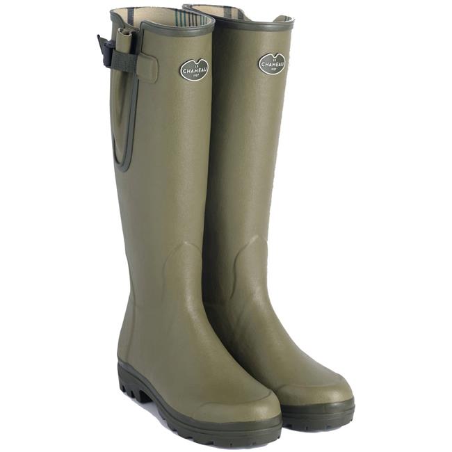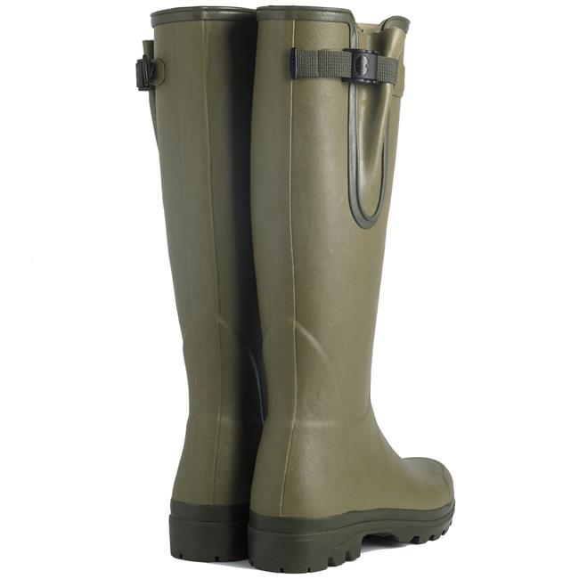 The gusset and snap-fastening buckle design, exclusive to Le Chameau, eases entry into the boot and tightens around the calf. The bi-density sole provides grip on all terrains and is resistant to abrasion.