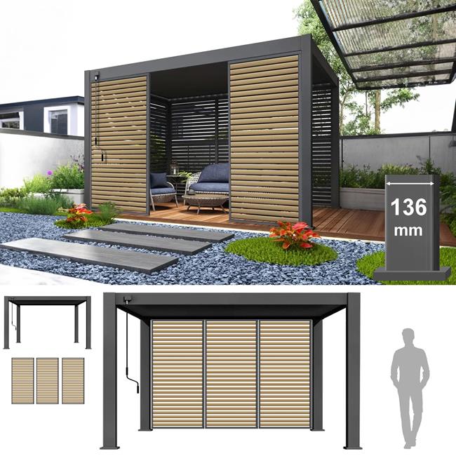 Westminster - 4 x 3m Louvred Roof Pergola Inc 3 Wall Panels
