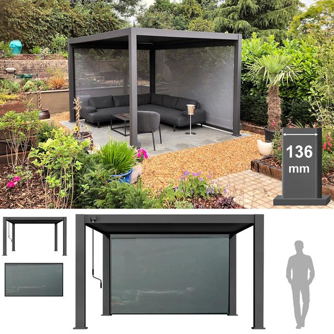 ![]() 4.0 x 3.0m Rectangular Louvred Roof Pergola Heavy Duty With 136mm Legs Inc. 4m Pull Down Screen Availability: IN STOCK Product Code: PERG4030-4SS |