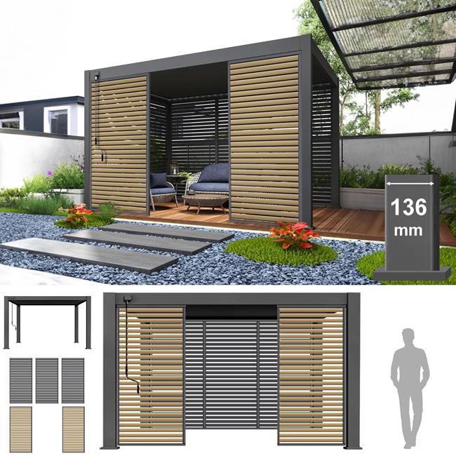 Westminster - 4 x 3m Louvred Roof Pergola Inc 5 Wall Panels